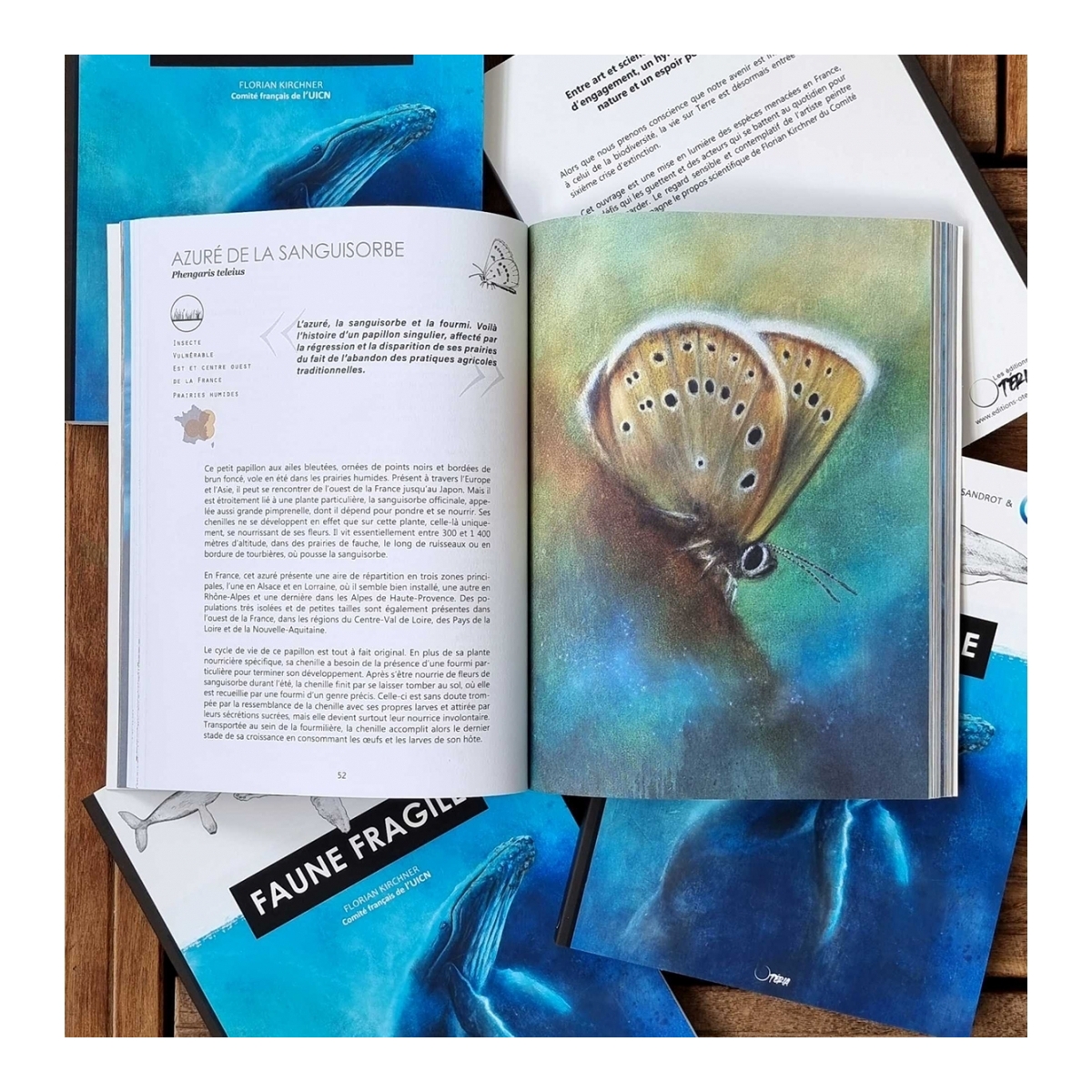 "Faune Fragile" Livre du Comité Français de l'Union internationale pour la conservation de la nature, illustré par Sandrot. Entre art et science, ce recueil est un outil d’engagement, un hymne au respect de la nature et un espoir pour l’avenir.